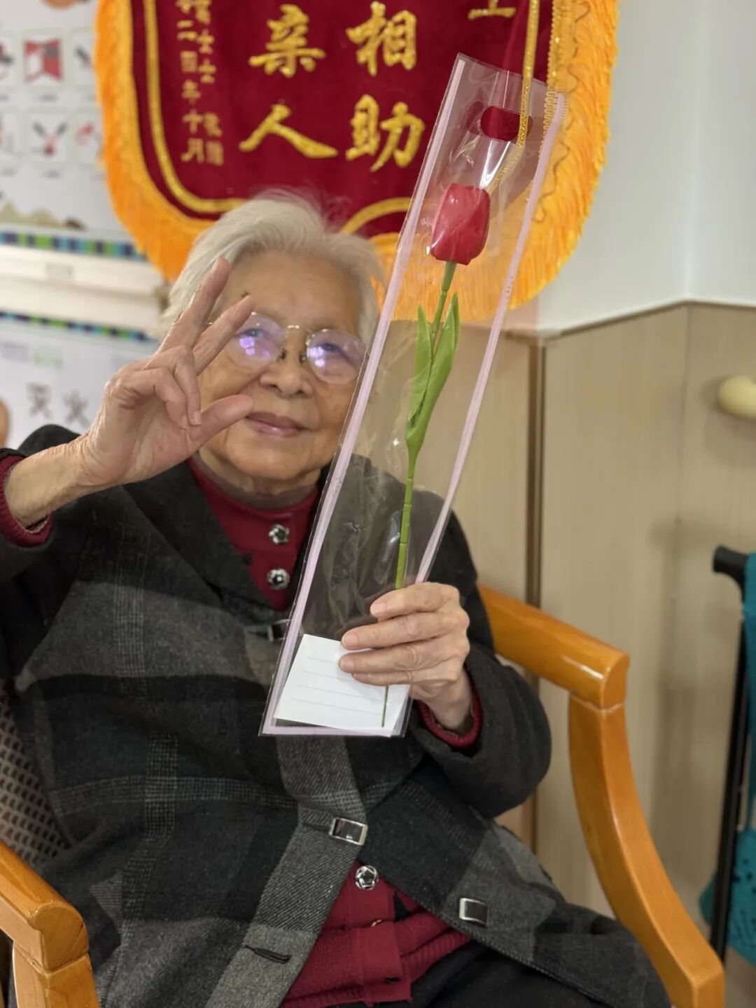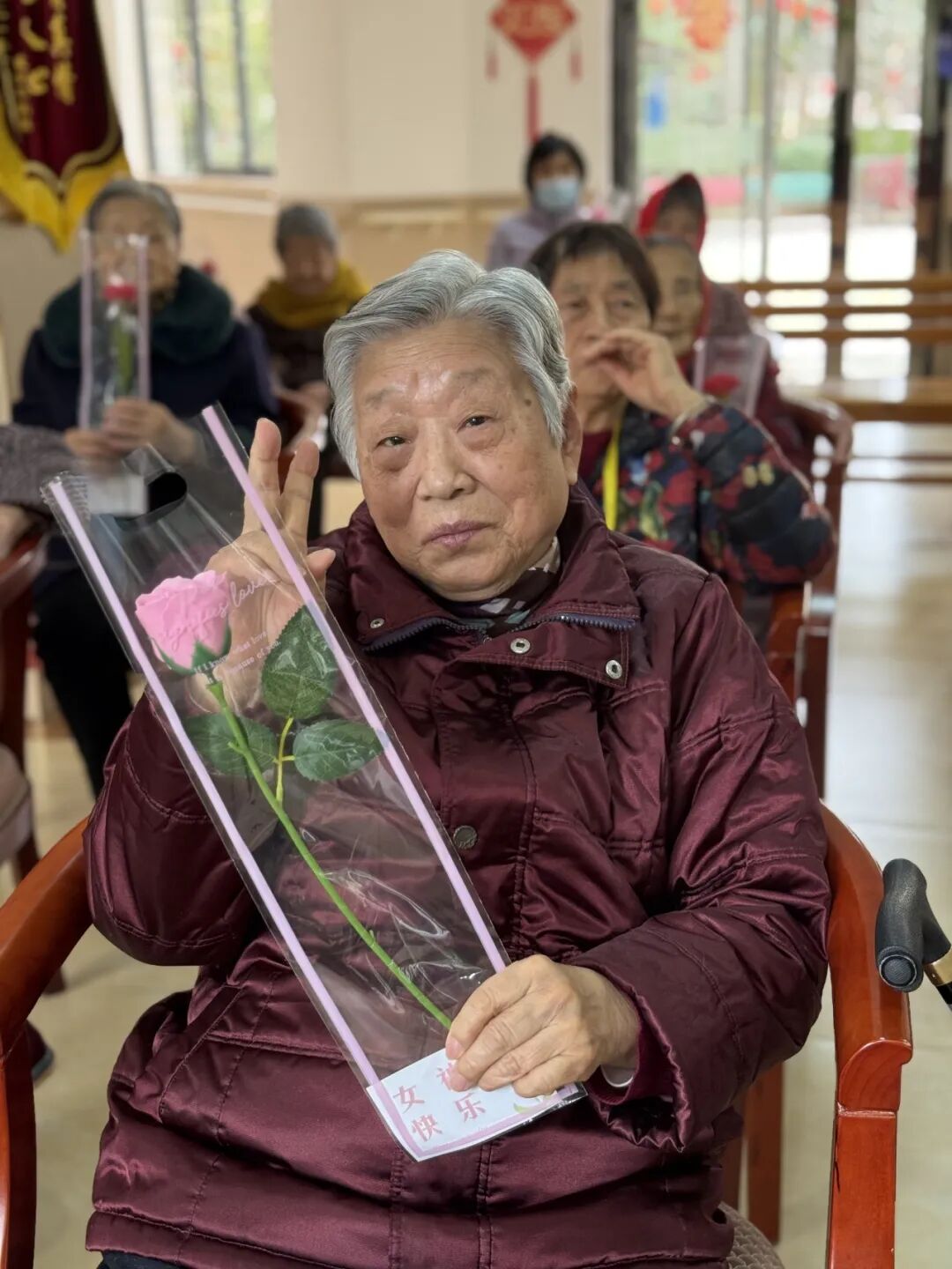 春和景明,暖意绵长。今日,泉州江南老年颐乐园暖意涌动,工作人员将一束束娇艳的爱心花朵,送到每一位女长者手中,以花为礼,致敬岁月里温柔坚韧的她们,让桑榆之年盛满仪式感与幸福感。